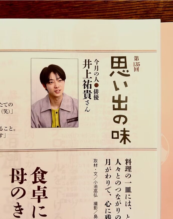 2025年2月発売の『栄養と料理』3月号では、井上さんが「思い出の味」というテーマで特集されました。